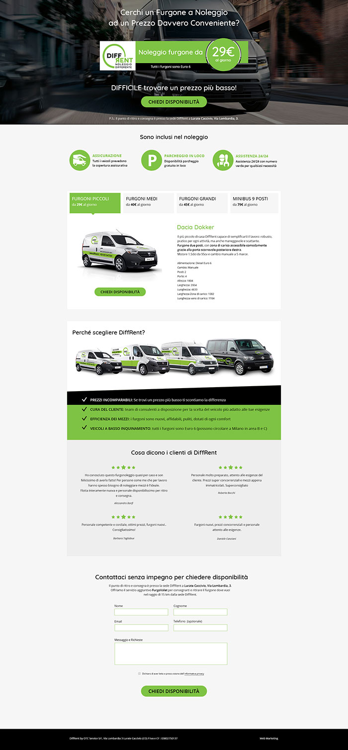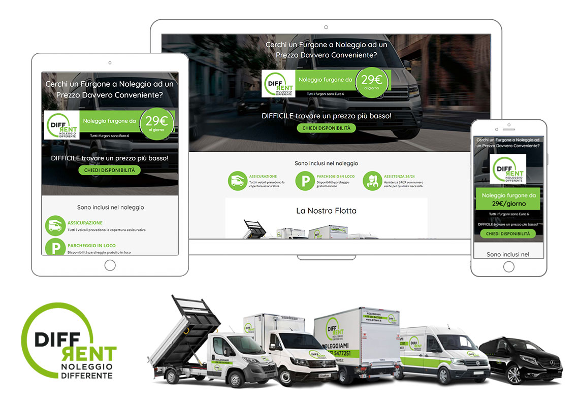 Abbiamo realizzato una landing page per enfatizzare i punti di forza di DiffRent tra cui i servizi offerti e la flotta a disposizione.